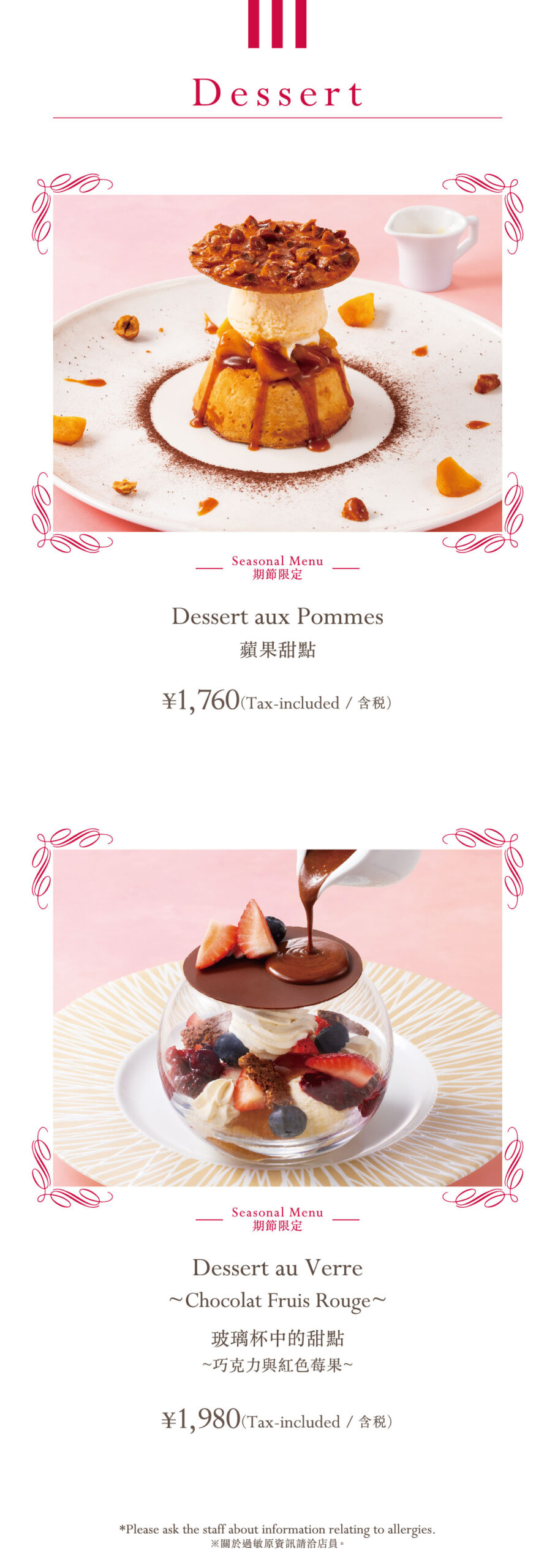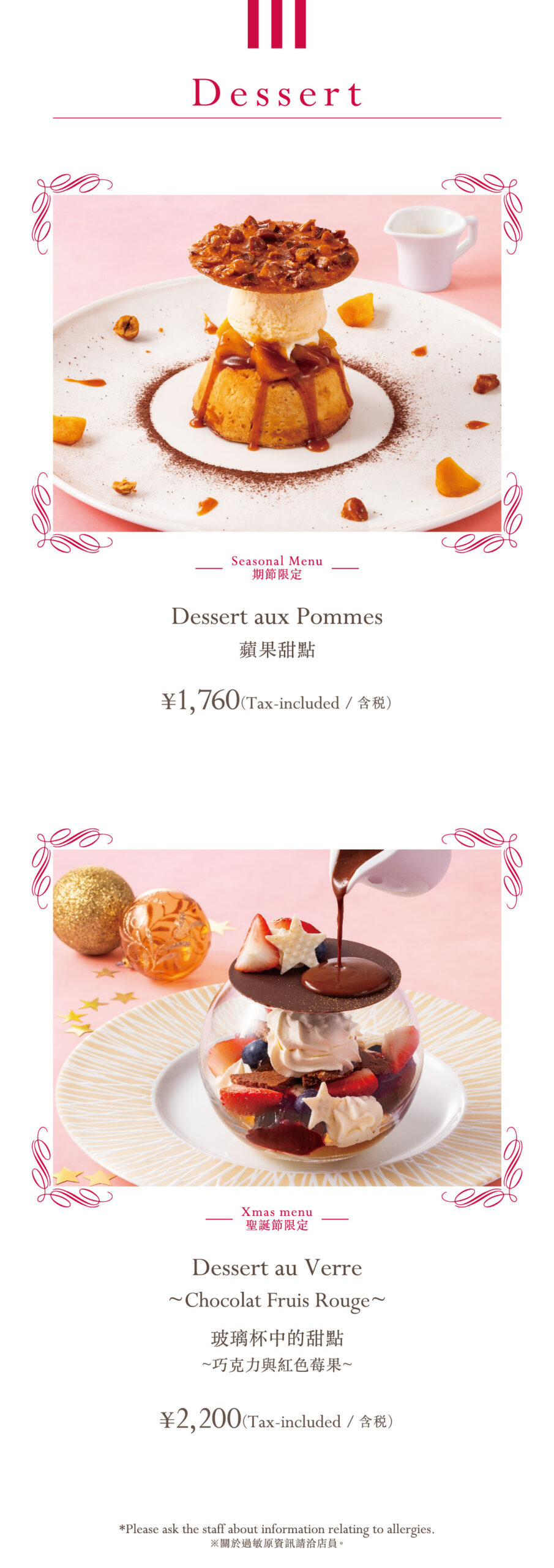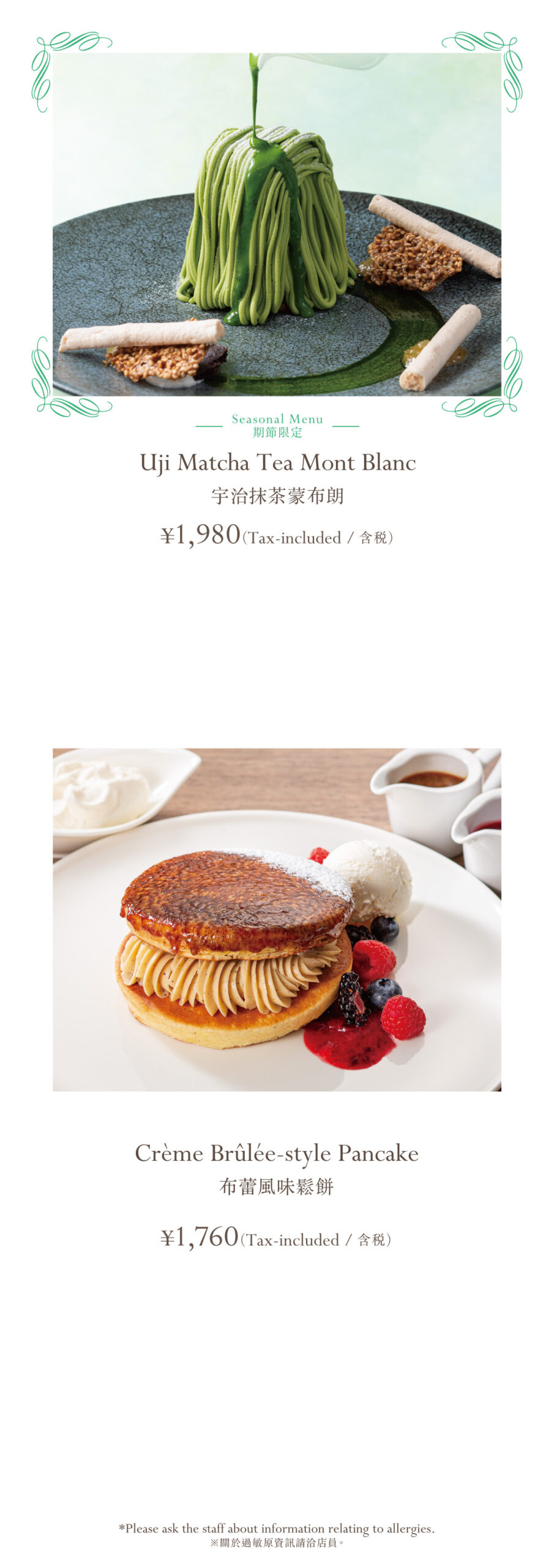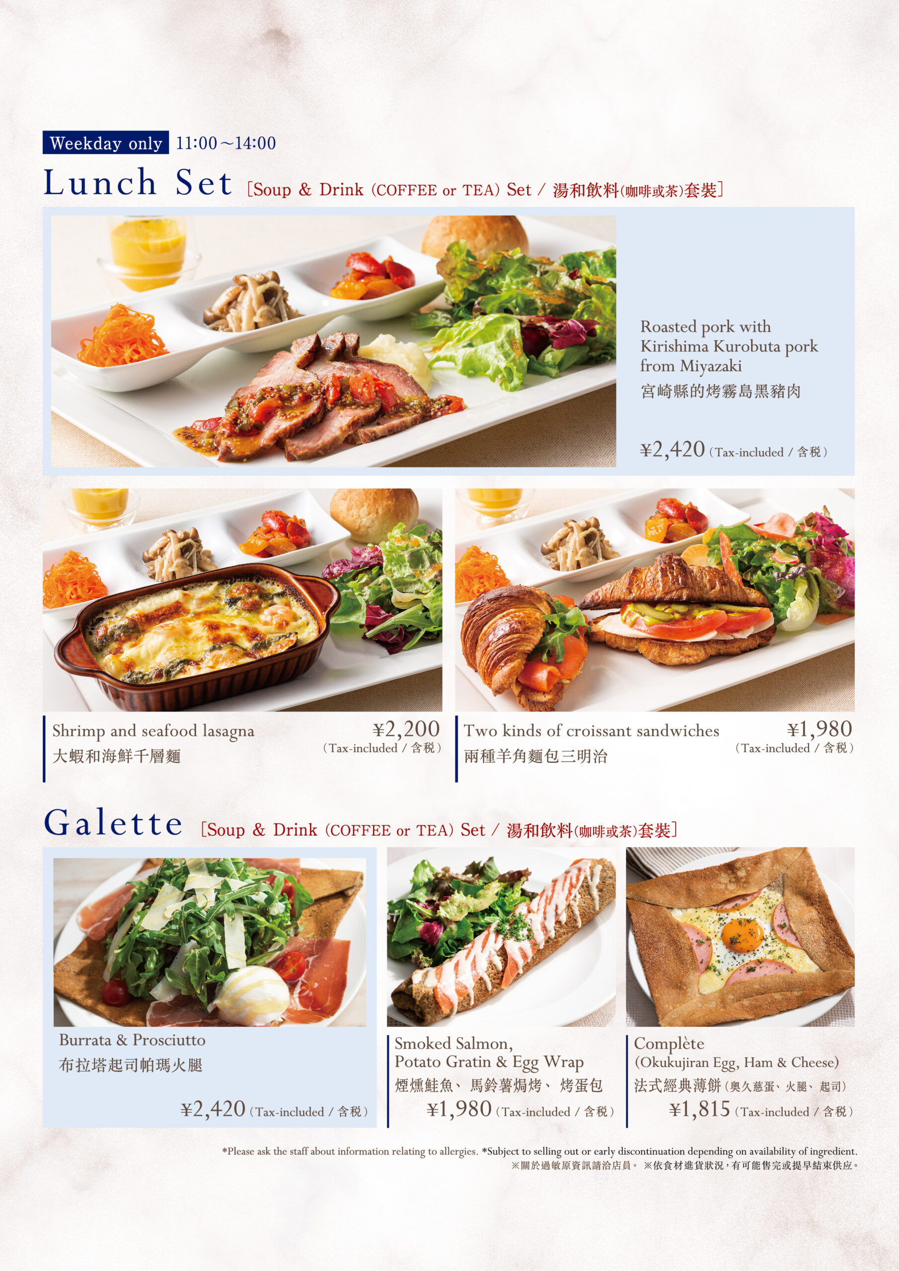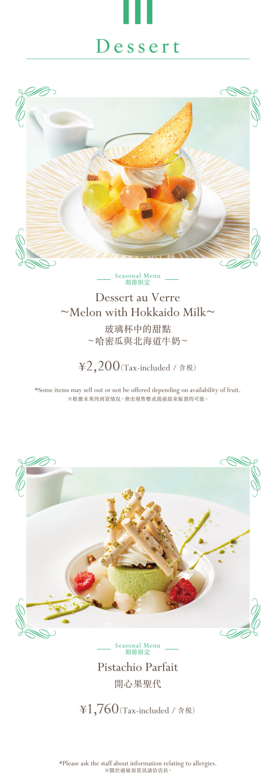 In the Aoyama Main Shop we enjoy serving customers unique and special items, such as fresh seasonal cakes and baked confectionery made from a variety of ingredients, as well as delicious dishes and desserts only available in this shop, in addition to our staple cookie products such as the popular Cigare.
