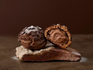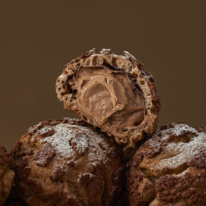 軽い食感と繊細なくちどけが特徴のラングドシャーをシュー生地にのせて焼き上げました。