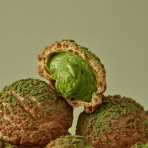 初夏の味わい「シガール オゥ マッチャ」と同じ「宇治抹茶」を使用した抹茶のクッキーシューです。使用している宇治抹茶は茶師が数種類の茶葉から厳選したオリジナルブレンド。宇治抹茶の香りと旨み、そして抹茶本来の味わいを十分にお楽しみいただけます。旨味や香りが引き立つ宇治抹茶を合わせた自家製の宇治抹茶カスタードクリームがたっぷりと詰まっており、やさしいバニラの風味が抹茶の味わいを引き立たせます。「シガール オゥ マッチャ」とともに、ヨックモックの抹茶シリーズで初夏の季節をお楽しみください。