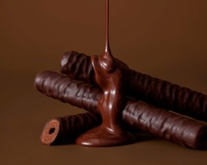 バターをふんだんに使用した生地に、カカオ豆本来の風味が楽しめるほろ苦いココアパウダーを混ぜ込んで焼き上げ、ロール状に巻きました。さらに、カカオ生地と相性が良いカカオ分61%の繊細な酸味とほろ苦さを持つビターチョコレートを厳選し、カカオ生地にたっぷりとまとわせました。