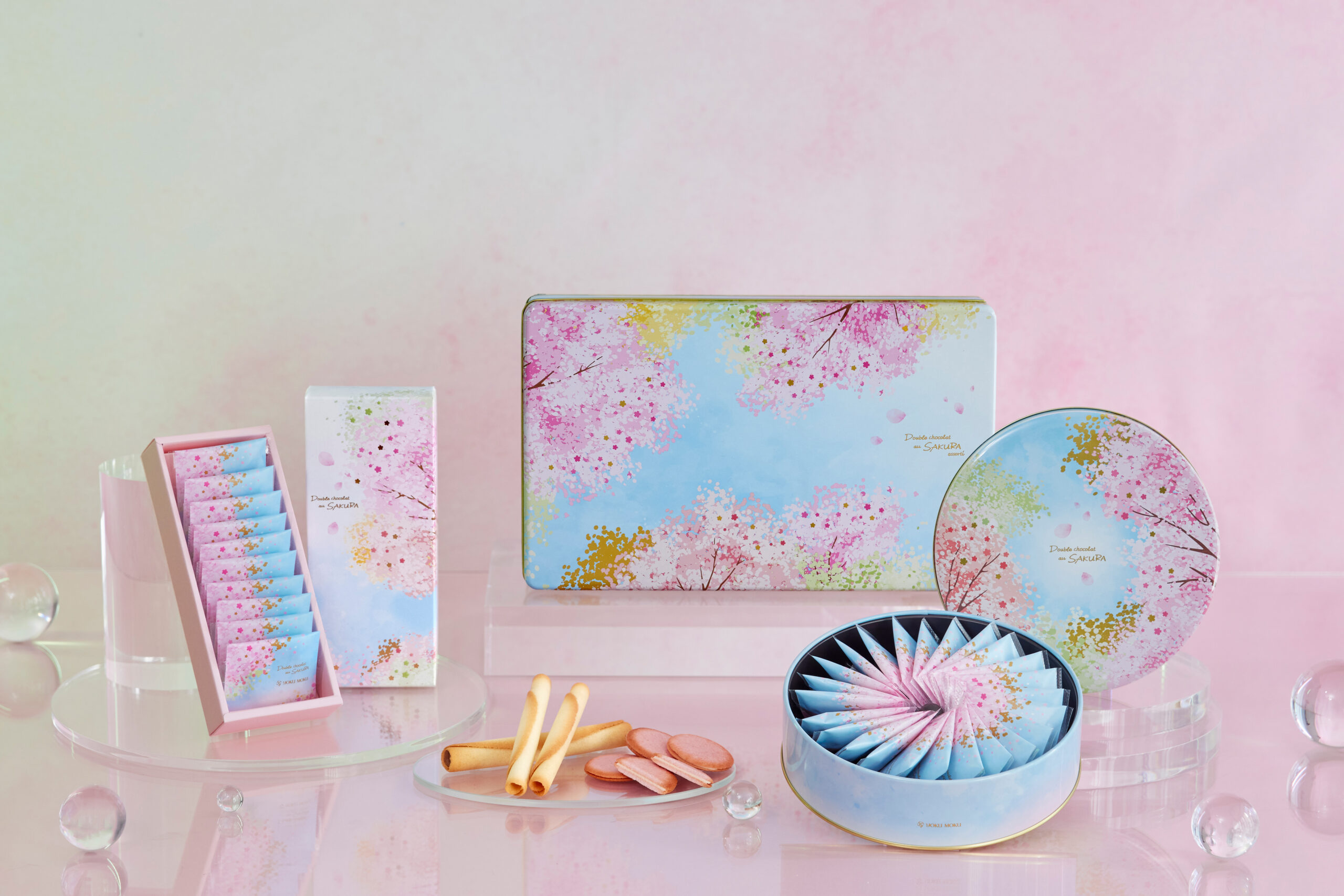 株式会社ヨックモック(本社:東京都千代田区、代表取締役:藤縄 武士) は、2026年2月15日(日)より春限定「ドゥーブル ショコラ オゥ サクラ」を全国のヨックモック店舗で発売します。今年はパッケージデザインがリニューアル。澄み渡る青空と咲き誇る桜を表し、門出を祝う想いを缶デザインに込めました。本商品限定のラングドシャーは、はらりとくちどけの良い食感に焼き上げ、桜風味のホワイトチョコレートをサンドしました。日本の春を象徴する桜は、海外でも和の美しさを表す花として人気が高く、国内外の方への贈り物やお花見のお供にぴったりです。進学や就職などの新生活を祝うプレゼントはもちろん、ご自身でお花見気分を楽しめるギフトにも。今年の春はヨックモックのお菓子で心華やぐひとときをお楽しみください。