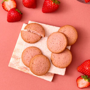 苺のパウダーを練り込んだ甘酸っぱい味わいの苺のクッキー。