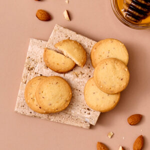 春の訪れを告げるアーモンドの花が蜜源のはちみつを使用し、ローストアーモンドと共に練り込み焼き上げたサブレ。隠し味にアプリコットのフルーティーな味わいを加えました。