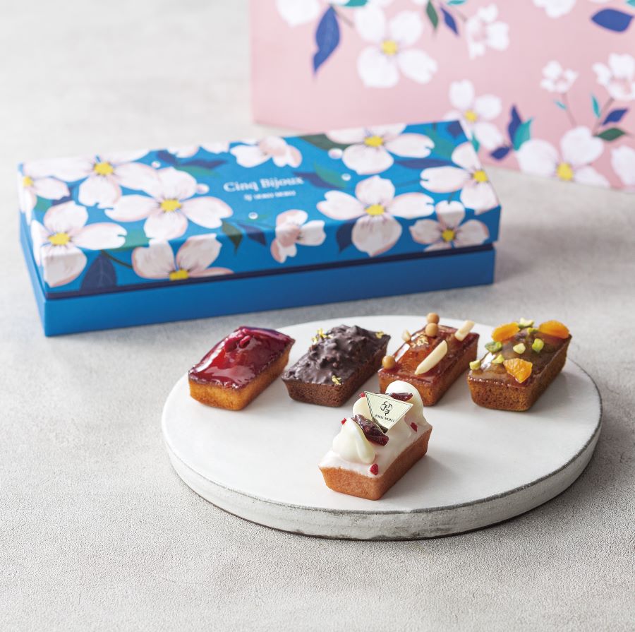 苺味のフィナンシェにミルククリームを絞り、その上からホワイトチョコレートでコーティングしています。苺はセミドライの果肉をシロップに漬けて柔らかくしました。