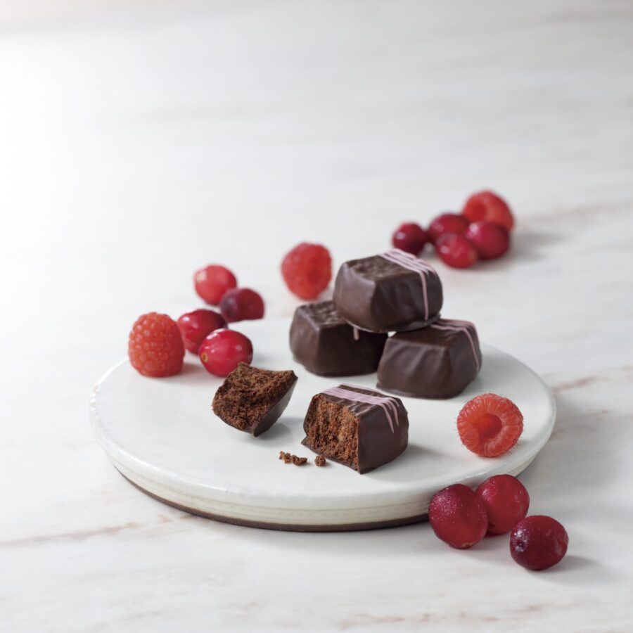 生地に練り込んだ程よい酸味のクランベリー果肉が、濃厚なコロンビアンカカオのアクセントに。