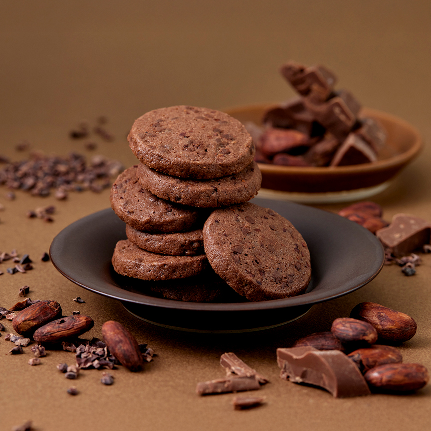 ショコラ生地に、ほろ苦さのあるカカオニブやチョコチップを混ぜ込んだザクッとした食感のクッキーです。