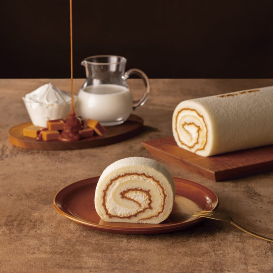 - ミルキーなクリームとビターなキャラメルペーストをふわふわしっとり食感が特徴のスフレ生地で巻きあげ、やさしい甘さとまろやかな苦みを楽しめる一品に仕上げました。