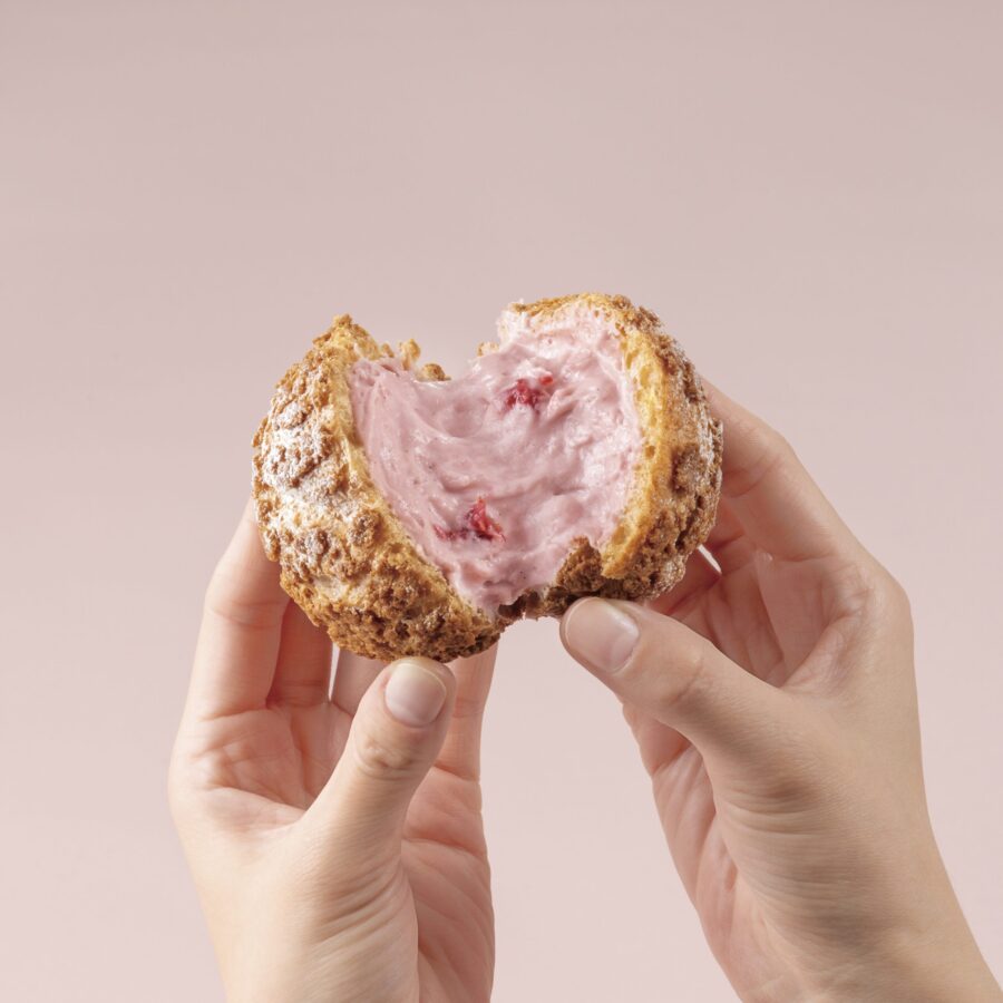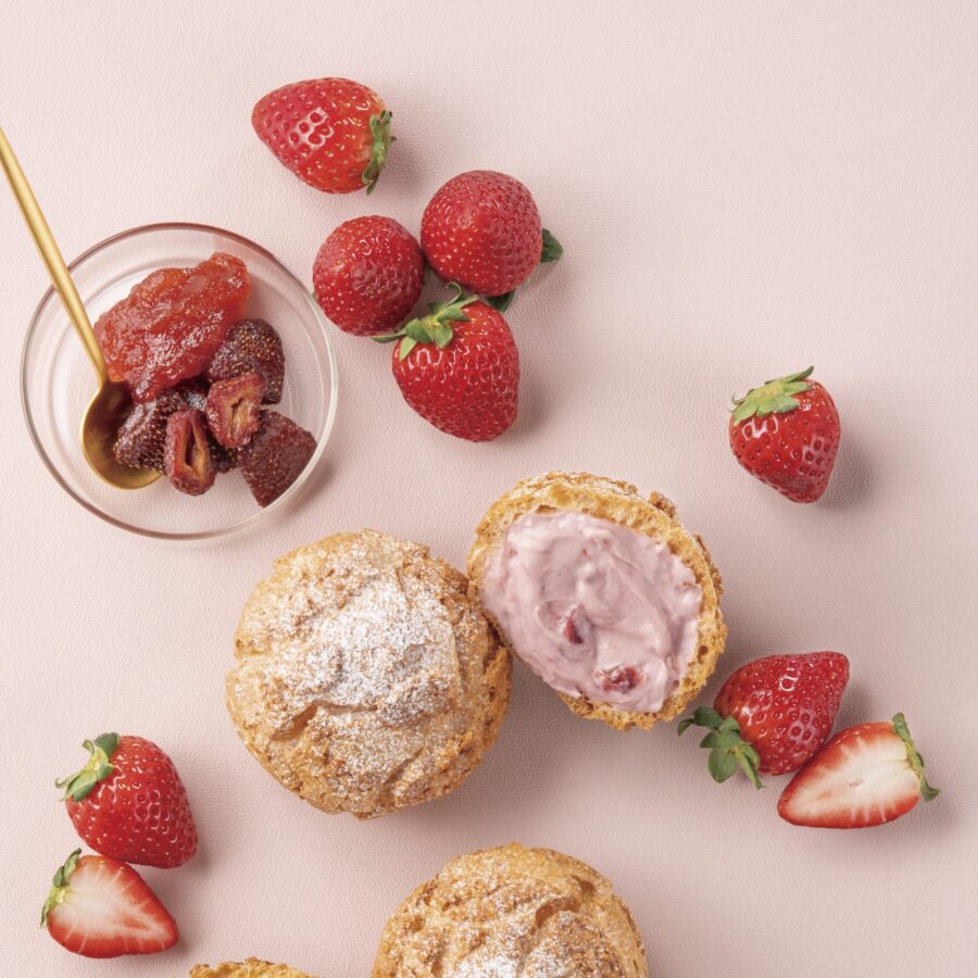 香ばしく仕上がった焼きたてのシュー生地と、酸味と甘みのバランスを活かした自家製苺カスタードクリームが生み出す贅沢な味わいをお楽しみください。