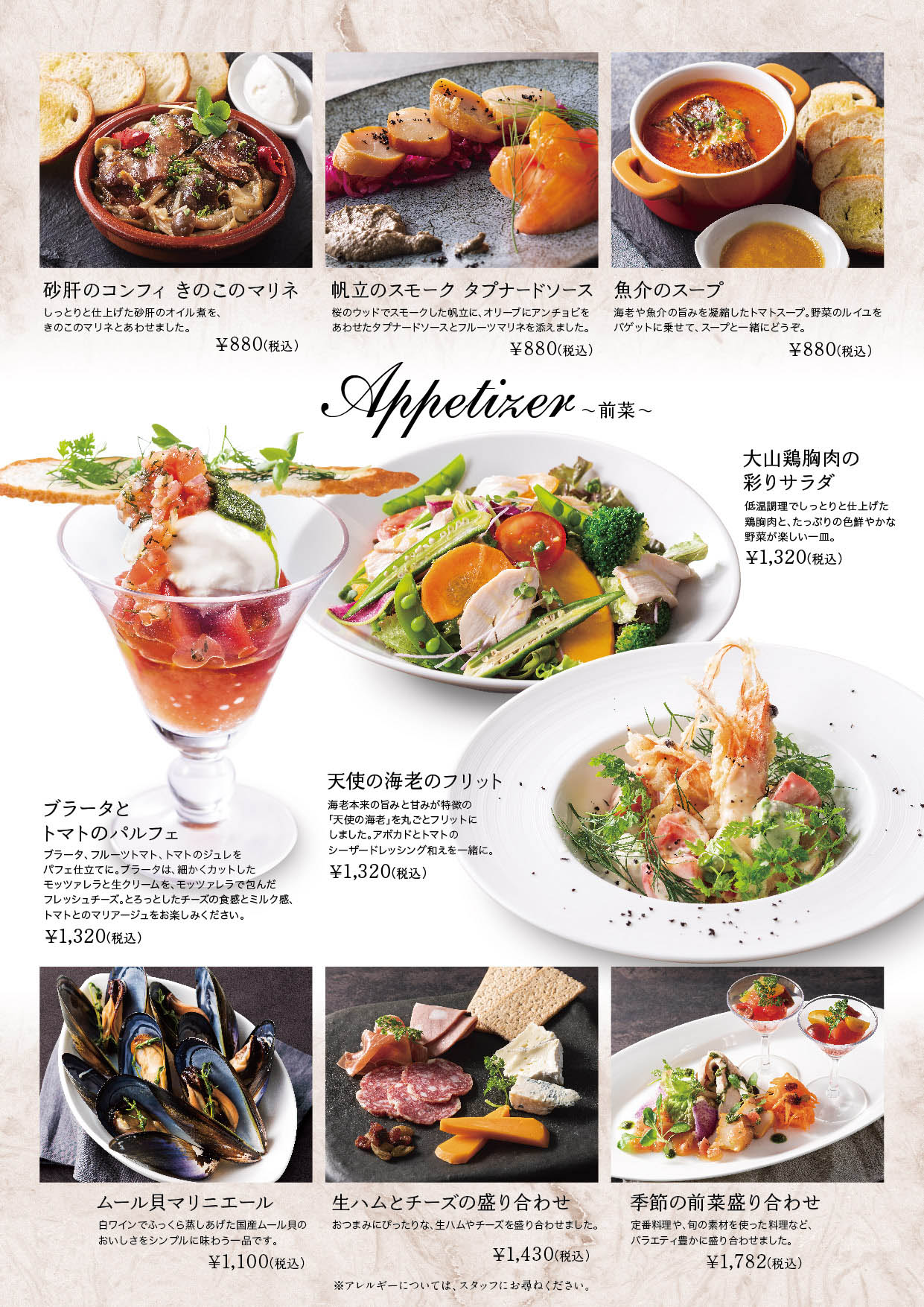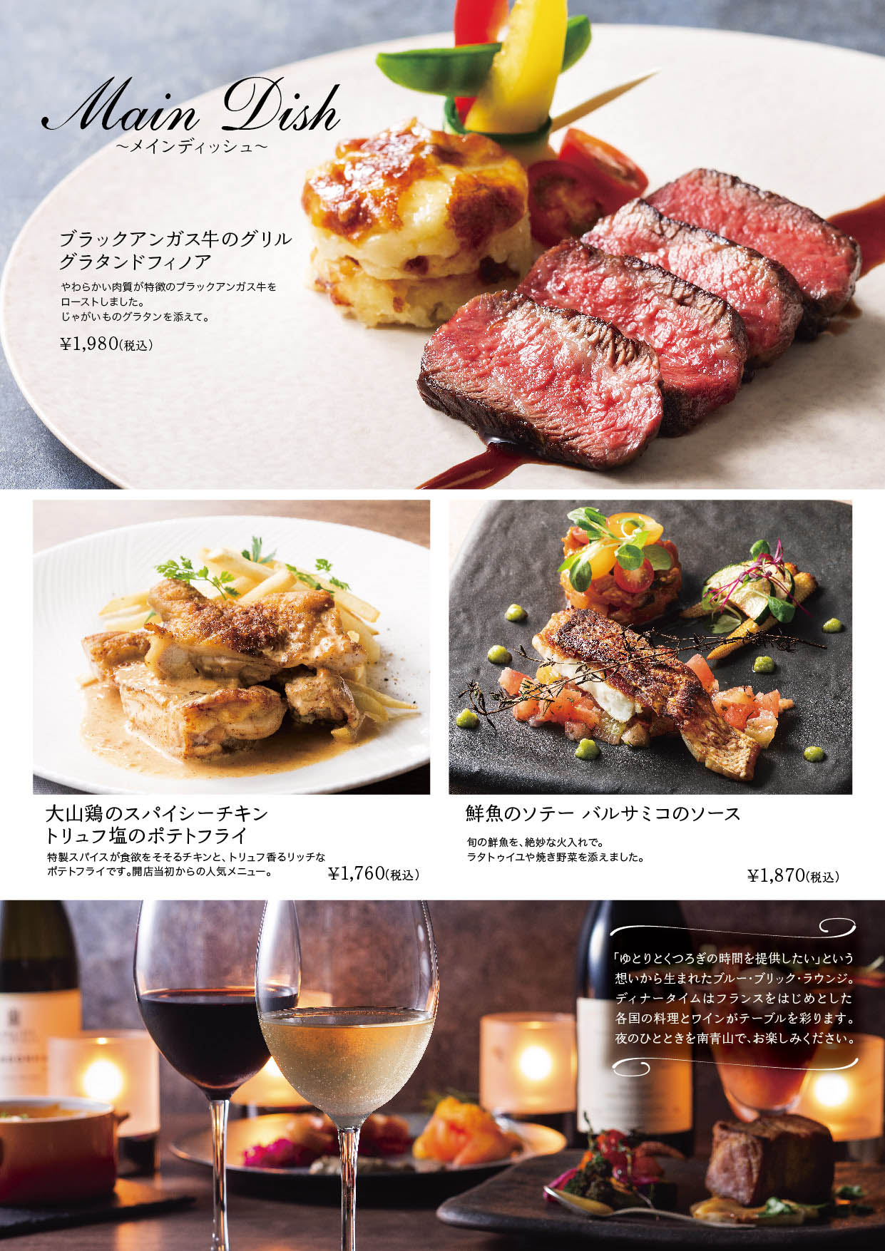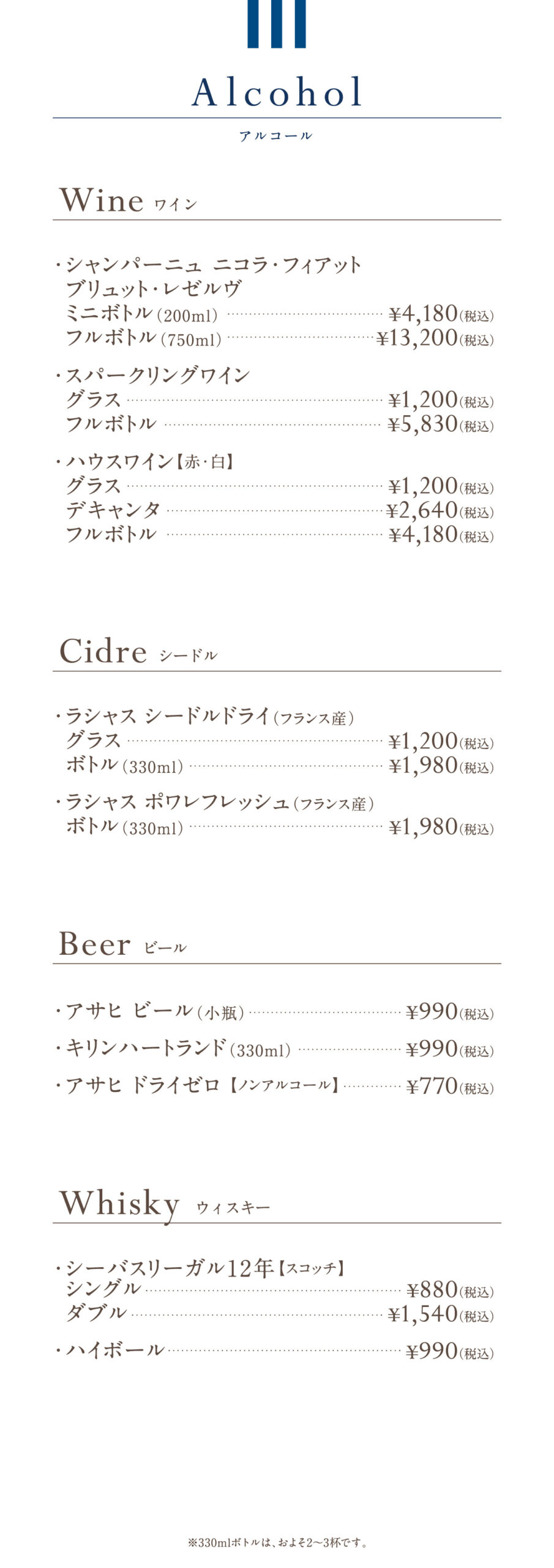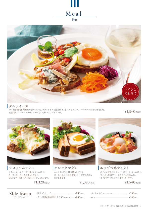 そして夕闇迫る頃からは、バールタイムの始まり。お酒をおいしく楽しむためのお料理がメニューに加わります。夜が更けるまでのひととき、大人の街で、味わい深い時間をお楽しみいただけます。