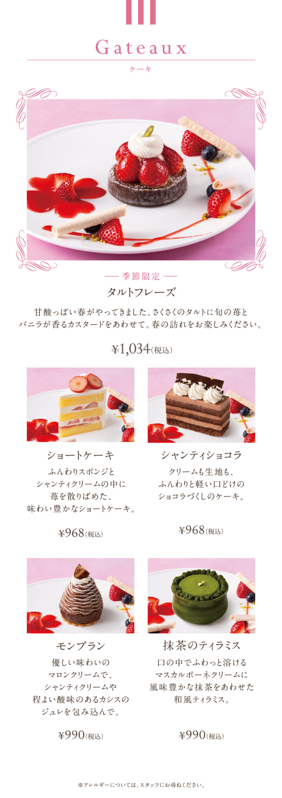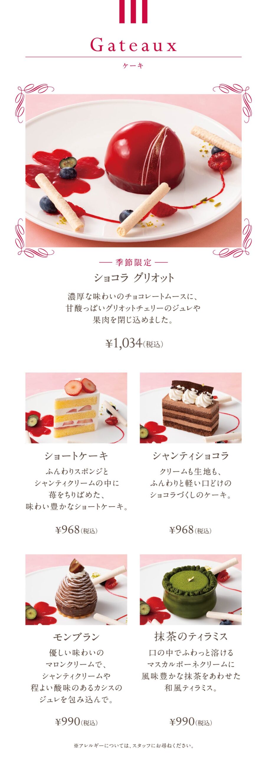 季節ごとに変化する彩り豊かなケーキや焼き菓子など、